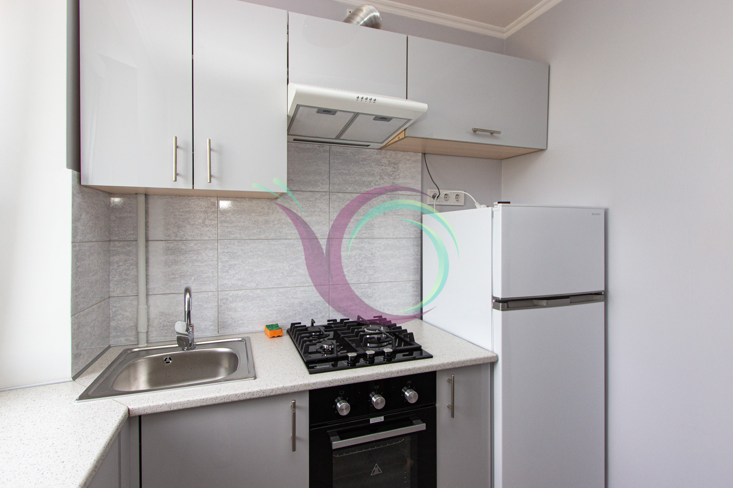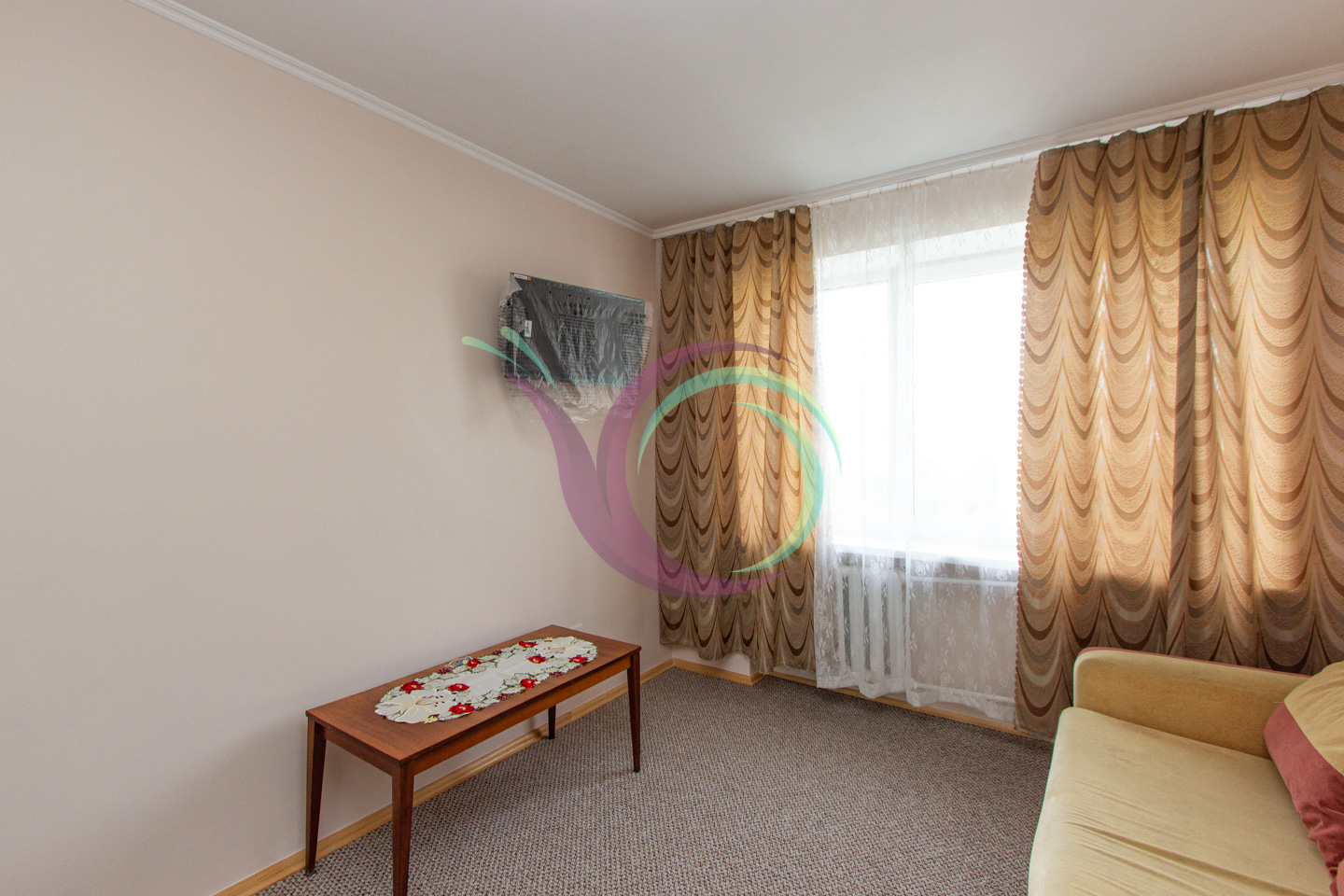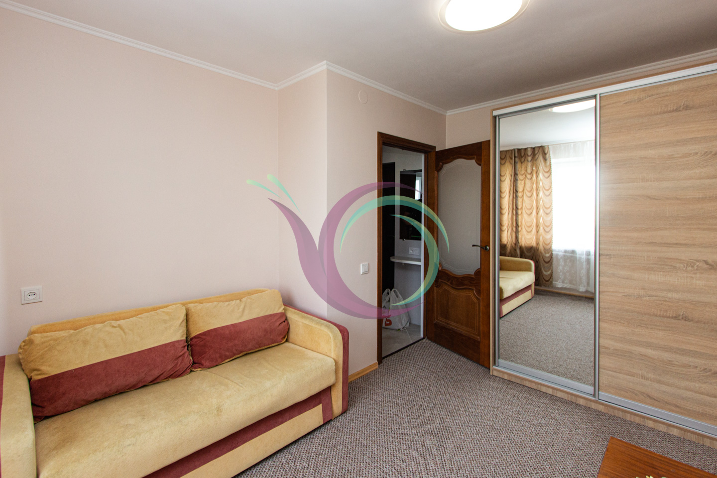 Затишна квартира з ремонтом та зручним плануванням. Кімната облаштована диваном, є містка шафа-купе та телевізор. Кухня мебльована, є необхідна побутова техніка.