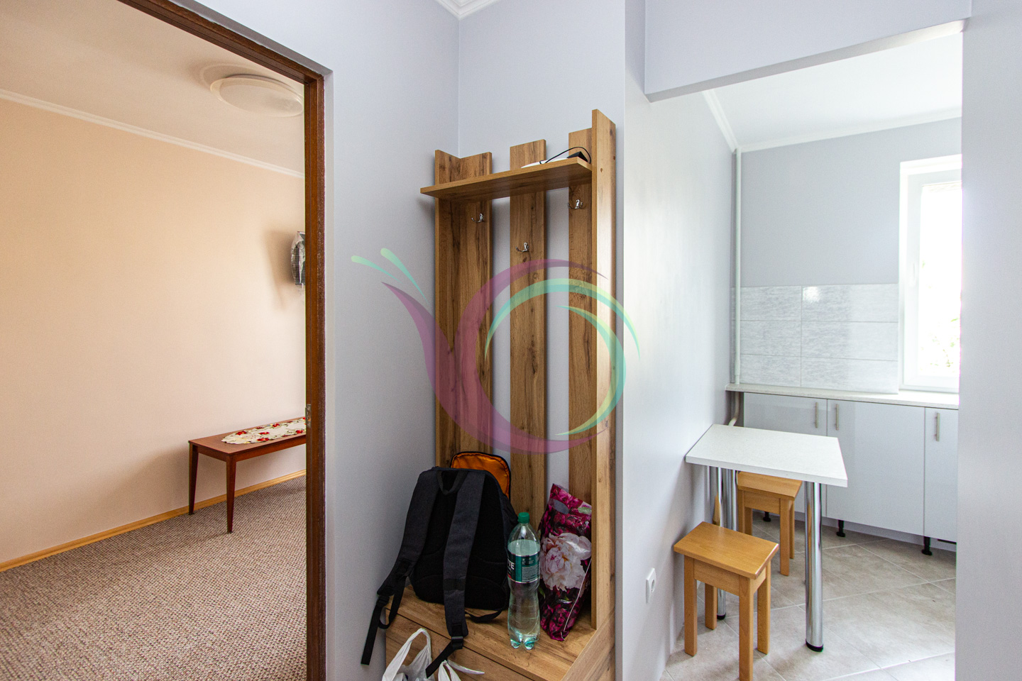 Перевага квартири у зручному розташуванні – поруч супермаркет, відділення пошти, аптека, зелені зони, дитячий садок.